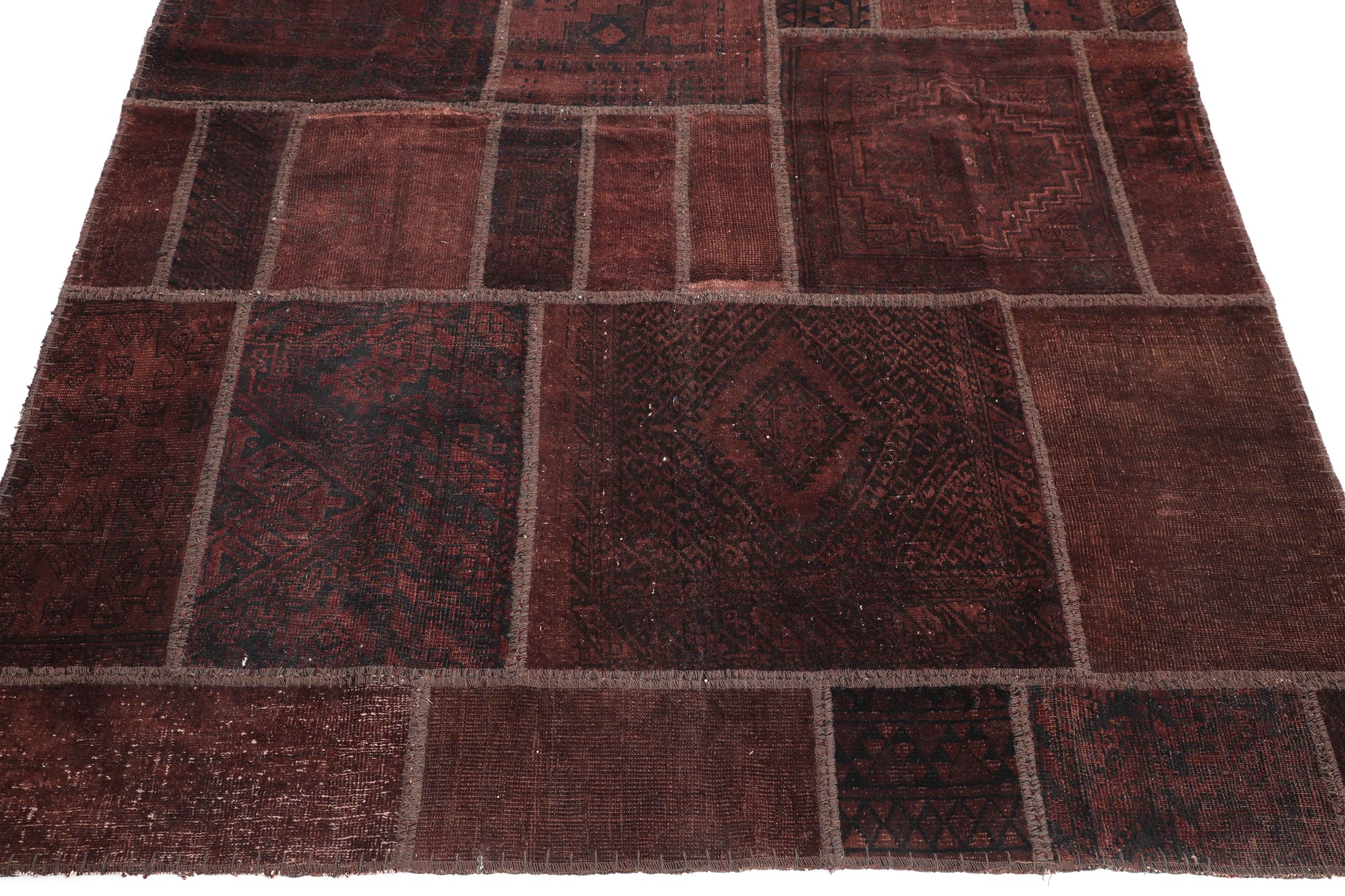 This dark brown overdyed rug with box texture combines boldness and elegance.