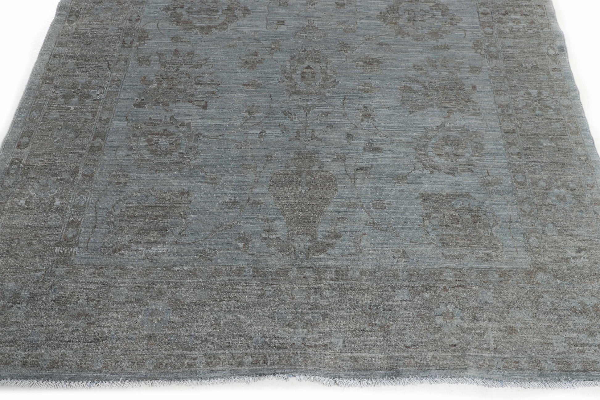 The bold beauty of a gray overdyed rug. This handcrafted piece adds warmth, grace, and elegance to any space.